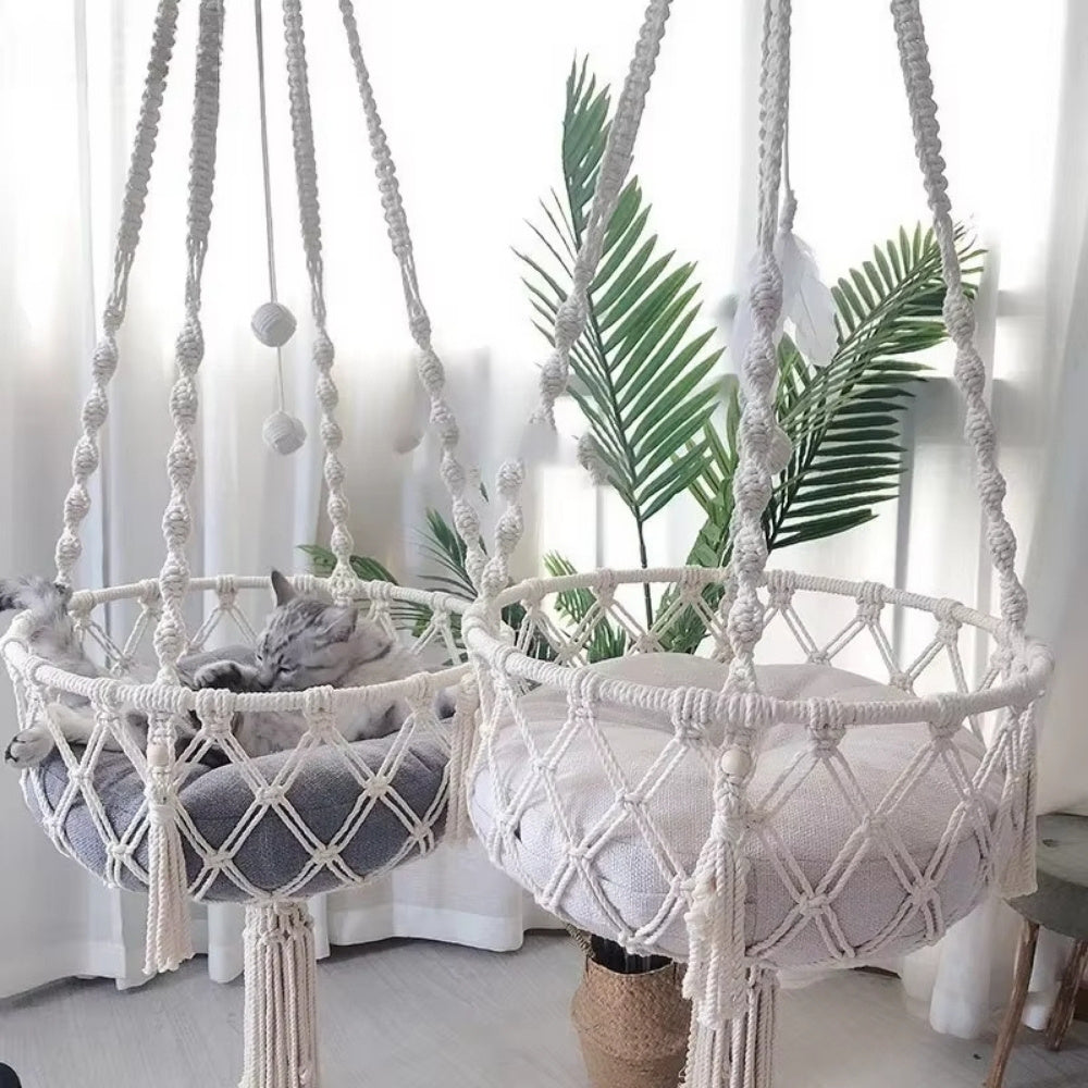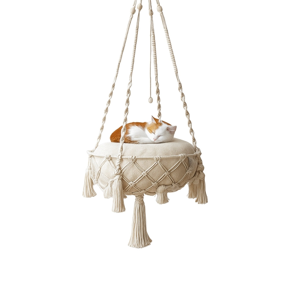 Handvävd Katt Hängmatta I Macramé – 40 cm