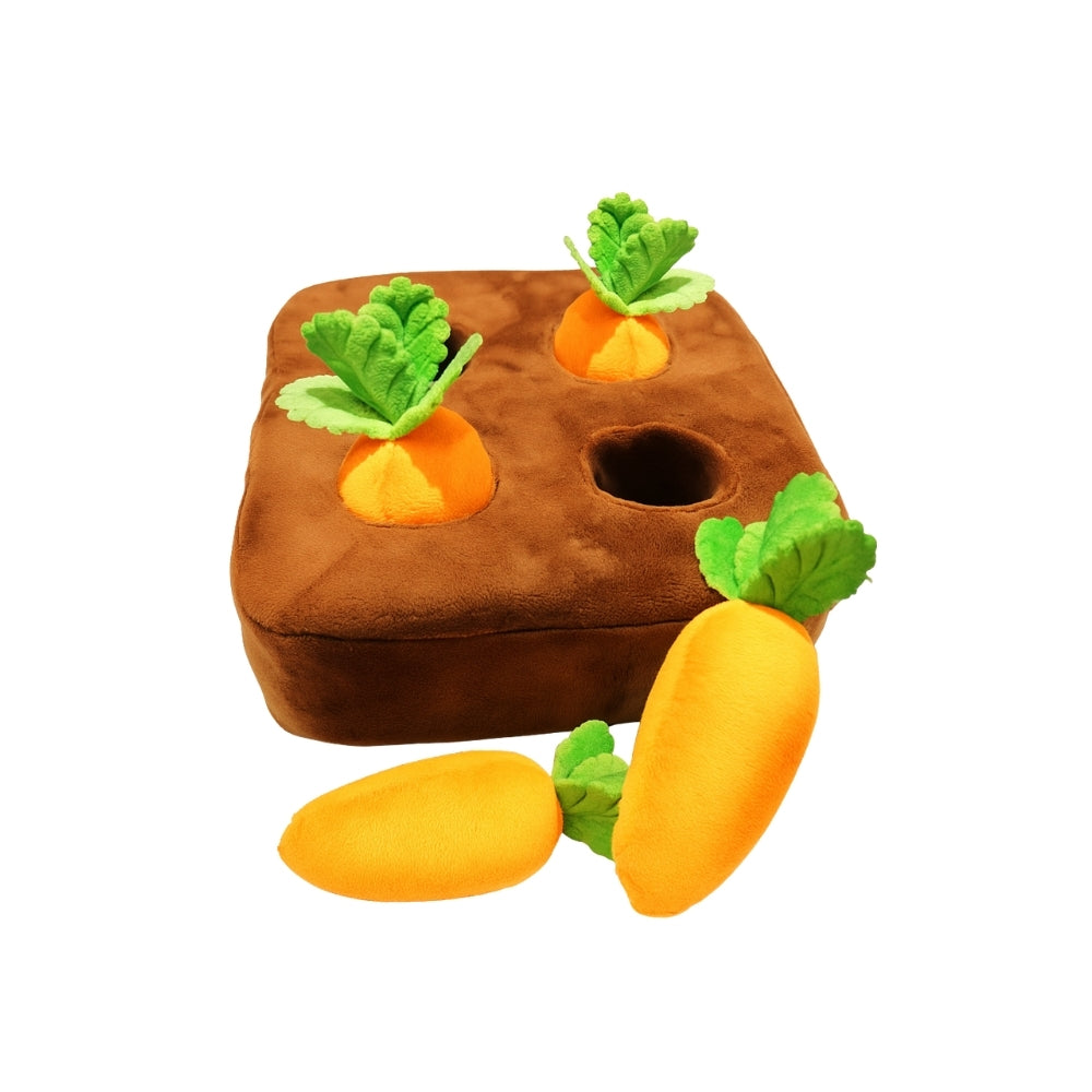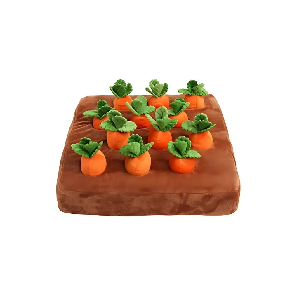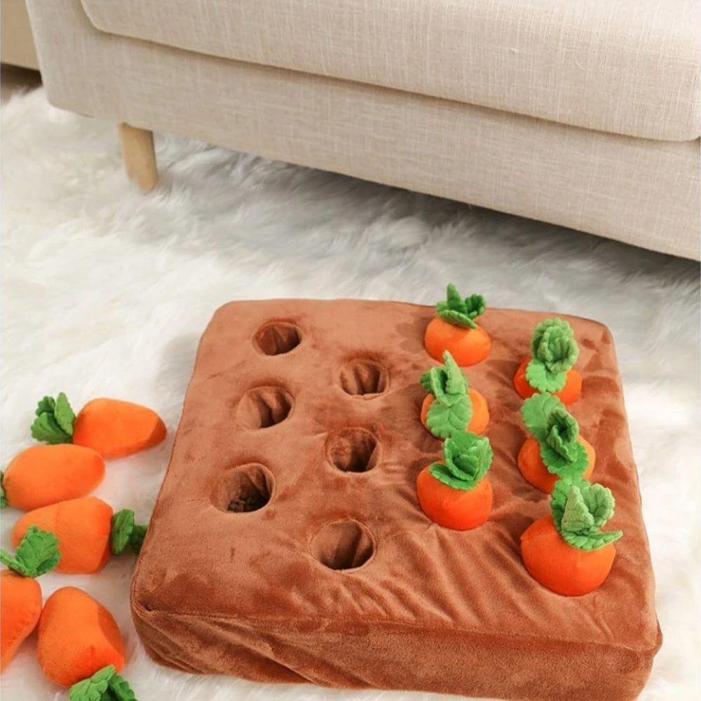 Utmana nosen och lugna energin med denna morotspusselmatta. De mjuka morötterna gömmer godbitar som hundar och katter får nosa, dra och lyfta upp – en naturlig aktivitet som stimulerar luktsinnet och motverkar snabbhetsätning. Mattan är sydd i tålig bomullsfleece med halkskydd undertill och kan vikas ihop för enkel förvaring eller resor.